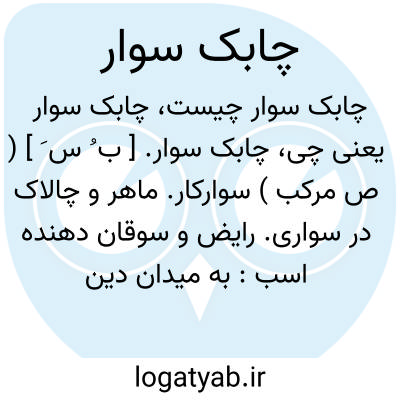 که نیم کشته چابک سوار من شده است.محمد قلی میلی ( از آنندراج ).و بر پشت هر یک چابک سواری چون ماه با قبا و کلاه نشسته. ( ترجمه محاسن اصفهان ص 52 ). چابک سوار نیزه گذار. ( سمط العلی ص 68 ). || سوداگراسب. || تازیانه زن. ( ناظم الاطباء ).