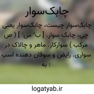 که نیم کشته چابک سوار من شده است.محمد قلی میلی ( از آنندراج ).و بر پشت هر یک چابک سواری چون ماه با قبا و کلاه نشسته. ( ترجمه محاسن اصفهان ص 52 ). چابک سوار نیزه گذار. ( سمط العلی ص 68 ). || سوداگراسب. || تازیانه زن. ( ناظم الاطباء ).
