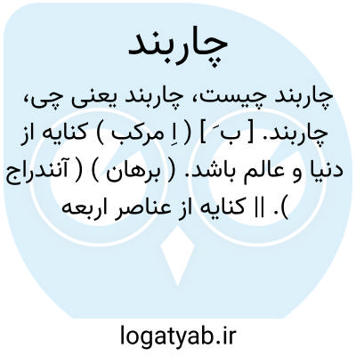 چاربند. [ ب َ ] ( اِ مرکب ) کنایه از دنیا و عالم باشد. ( برهان ) ( آنندراج ). || کنایه از عناصر اربعه میباشد. ( آنندراج ):