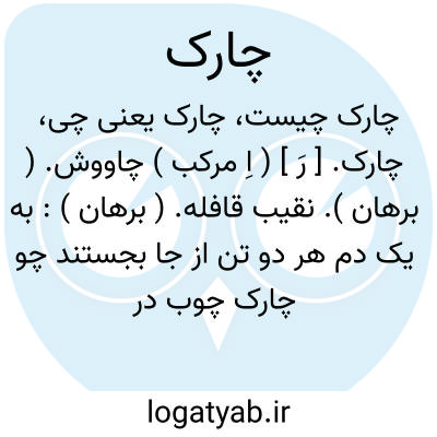 چارک. [ رَ ] ( اِ مرکب ) مخفف چهاریک. ربع. یک چهارم. یک حصه از چهار حصه. || چهاریک من ( ده سیر ) چهاریک ذرع. ( ده گره ) ربع یک من. یک چهارم من. || ربع یک ذرع.یک چهارم ذرع. || ده سیر ( در تداول عامه ). || پنجاه ( مخفف پنجاه درم که یک چهارم من تبریز باشد ). و رجوع به ربع و چاریک و چهاریک شود.