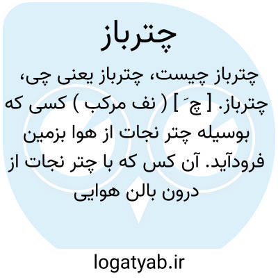 چترباز. [ چ َ ] ( نف مرکب ) کسی که بوسیله چتر نجات از هوا بزمین فرودآید. آن کس که با چتر نجات از درون بالن هوایی یا از درون هواپیما بزمین فرودآید. فرودآینده با چتر نجات از هوا بزمین. سربازی که بوسیله چترنجات در خاک دشمن یا در مواضع جنگی دشمن فرودآید.