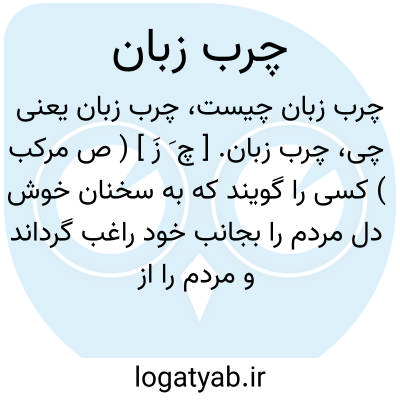 چرب زبان. [ چ َ زَ ] ( ص مرکب ) کسی را گویند که به سخنان خوش دل مردم را بجانب خود راغب گرداند و مردم را از خود کند. ( برهان ) ( ناظم الاطباء ).کنایه از کسی باشد که بسخنان خوش دل مردم را بجانب خود راغب سازد. ( انجمن آرا ) ( آنندراج ). شیرین گفتار. ( فرهنگ نظام ). چرب سخن. چرب گو. خوش سخن. خوش زبان. چرب گوی. بُزاع. حُداد. حَدید. خَلیف. عَذِق. لَوذَع. مِدرَه. ( منتهی الارب ): خردمند چرب زبان اگر خواهد حقی را در لباس باطل بیرون آرد. ( کلیله و دمنه ).