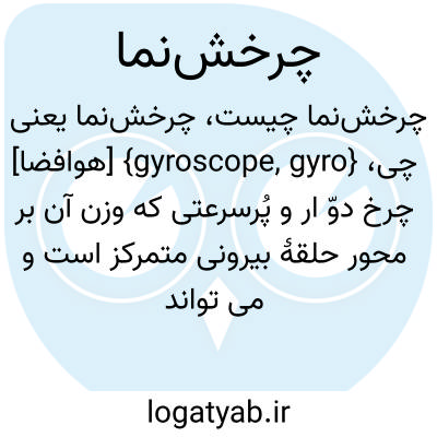 {gyroscope, gyro} [هوافضا] چرخ دوّ ار و پُرسرعتی که وزن آن بر محور حلقۀ بیرونی متمرکز است و می تواند آزادانه عمود بر صفحۀ دَوَران در یک یا چند راستا بچرخد