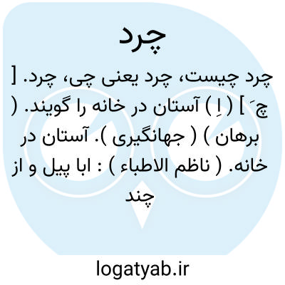 چرد. [ چ َ ] ( اِ ) آستان در خانه را گویند. ( برهان ) ( جهانگیری ). آستان در خانه. ( ناظم الاطباء ):