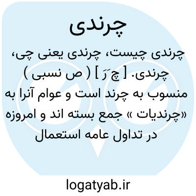 چرندی. [ چ َرَ ] ( ص نسبی ) منسوب به چرند است و عوام آنرا به «چرندیات » جمع بسته اند و امروزه در تداول عامه استعمال جمع آن از مفردش متداول تر است. رجوع به چرند شود.