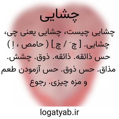 چشایی. [ چ َ / چ ِ] ( حامص، اِ ) حس ذائقه. ذائقه. ذوق. چشش. مذاق. حس ذوق. حس آزمودن طعم و مزه چیزی. رجوع به چشش شود.