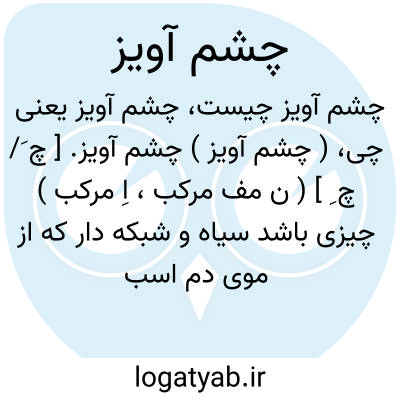 ( چشم آویز ) ( صفت اسم ) ۱ - نقابی سیاه و شبکه دار که زنان آنرا از پیش چشم آویزند. ۲ - چیزیست از پوست که آنرا تریشه تریشه کنند و بجهت دفع مگس از پی چشم اسب آویزند. ۳ - تعویذ دفع چشم زخم چشمارو.