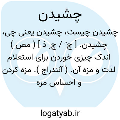 چشیدن. [ چ َ / چ ِ دَ ] ( مص ) اندک چیزی خوردن برای استعلام لذت و مزه آن. ( آنندراج ). مزه کردن و احساس مزه و طعم نمودن. ( ناظم الاطباء ). از چیزی اندک خوردن. ( فرهنگ نظام ). امتحان کردن طعم و مزه مأکولات و مشروبات. چاشنی کردن و چاشنی گرفتن. آگاهی از طعم چیزی یافتن بوسیله زبان. اندک مایه از طعام یا شرابی خوردن برای پی بردن به مزه آن. تَطَعﱡم. تَذَوﱡق ْ. تَلَمﱡطْ. تَغَذﱡم ْ. عَسَل. تَلَمﱡک. لَوس. ( منتهی الارب ). ذوق. ذواق. مذاق. مذاقه. مذاقت: