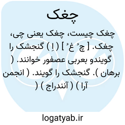 چغک: گنجشک را گویندو به‌عربی عصفور خوانند. (برهان ). (انجمن آرا. (آنندراج ) (جهانگیری ). (ناظم الاطباء).
