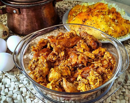 غذایی از گوشت و تخم مرغ و پیاز.