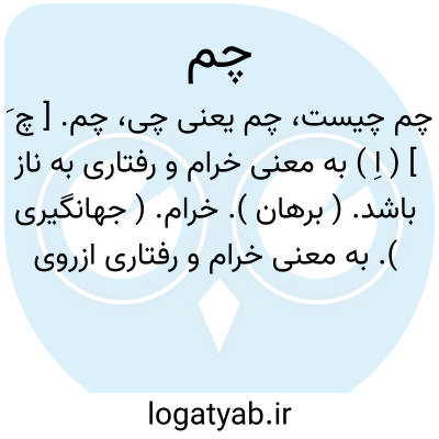 معنی، مفهوم: دعوی کنی که شاعر دهرم ولیک نیست / در شعر تو نه حکمت و نه لذت و نه چم (شهید بلخی: شاعران بی دیوان: ۳۳ )، چه جویی آن ادبی کآن ادب ندارد نام / چه گویی آن سخنی کآن سخن ندارد چم (شاکر بخاری: شاعران بی دیوان: ۴۸ ).