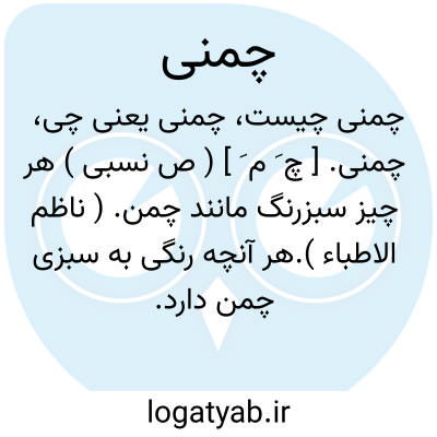 چمنی. [ چ َ م َ ] ( ص نسبی ) هر چیز سبزرنگ مانند چمن. ( ناظم الاطباء ).هر آنچه رنگی به سبزی چمن دارد. || نوعی از رنگ سبز. ( از آنندراج ). رنگی به رنگ سبزه چمن: سبز چمنی. || سایه سبزه. ( ناظم الاطباء ).