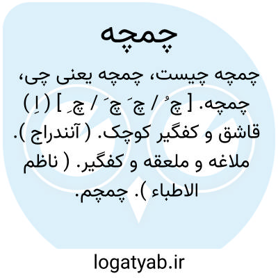 چمچه. [ چ ُ / چ َ چ َ / چ ِ ] ( اِ ) قاشق و کفگیر کوچک. ( آنندراج ). ملاغه و ملعقه و کفگیر. ( ناظم الاطباء ). چمچم. خَطیفَه. ( منتهی الارب ):