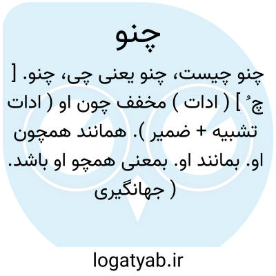 چنو. [ چ ُ ] ( ادات ) مخفف چون او ( ادات تشبیه + ضمیر ). همانند همچون او. بمانند او. بمعنی همچو او باشد. ( جهانگیری ). مخفف چون او باشد. ( برهان ) ( آنندراج ) ( انجمن آرا ) ( شرفنامه منیری ). مثل او. مانند او: