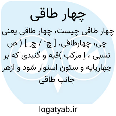 چهارطاقی. [ چ َ / چ ِ ] ( ص نسبی، اِ مرکب )قبه و گنبدی که بر چهارپایه و ستون استوار شود و ازهر جانب طاقی هلالی دارد و هر یک از طاقهای چهارگانه بر دو پایه و ستون نهاده شود و سقف و قبه و گنبد براین پایه ها و طاقها قرار گیرد. || بنایی مانند این که بر سر قبرها کنند: حنظله روزی بر چهارطاقی شدی و به آواز بلند گفتی بنی اسرائیل را که: قولوا جمیعاً لااله الا اﷲ. ( قصص الانبیاء132 ).