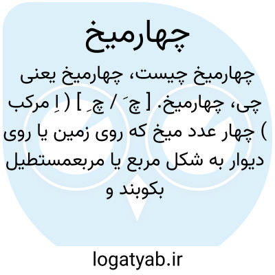( اسم ) ۱ - چهار عدد میخ که روی زمین یا روی دیوار بشکل مربع یا مستطیل بکوبند و چهار گوش. چیزی را بدان ببندند. ۲ - نوعی شکنجه که چهار دست و پای کسی را بچهار میخ ببندند و شکنجه اش کنند. ۳ - چهار عنصر ( ناظم الاطبائ ). ۴ - عمل لواط ( ناظم الاطبائ ).