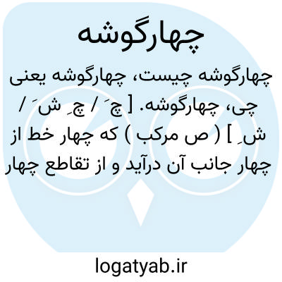 ( اسم ) ۱ - هر چیزی که دارای چهار زاویه باشد مربع چهار گوش چارگوشه. ۲ - تخت پادشاهان. ۳ - تابوت. ۴ - چهار حد چهار جهت. ۵ - سربند. ۶ - سفر. کوچک.