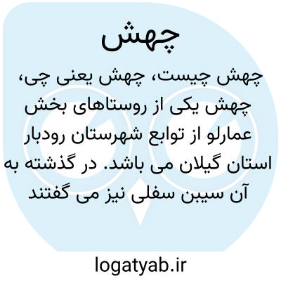 چهش یکی از روستاهای بخش عمارلو از توابع شهرستان رودبار استان گیلان می باشد. در گذشته به آن سیبن سفلی نیز می گفتند و به همین دلیل نیز قرابت زیادی بین خانواده های روستای سیبن و چهش وجود دارد. دلیل نامگذاری آن به این اسم به درستی مشخص نیست. گویش مردم روستا کرمانجی بوده و کسب و کار آنها اغلب کشاورزی و دامداری می باشد. در مورد مبدا پیدایش روستا به نظر می رسد که حدود بیشتر از ۱۰۰ سال نباشد چرا که رابینیوی فرانسوی در کتاب گیلان خود که در سال ۱۹۰۶ - ۱۹۱۲ نگارش کرده است نامی از این روستا نبرده است. آن چه که مسلم است این است که ساکنان اولیه آن از اولاد ساکنان سیبن بودند که در حدود ۳ کیلومتری شمال چهش واقع می باشد. و به همین خاطر نیز اوایل آن را سیبن سفلی می نامیدند. در زلزله سال ۱۳۶۹ رودبار و منجیل این روستا به کلی تخریب شد و به دلیل رانشی بودن زمین آن مسئولین وقت تصمیم گرفتند که مکان آن را به مکان فعلی آن که تمرک می باشد انتقال دهند. تمرک یا تخت تیمور در غرب چهش قرار دارد. با این حال ساکنان زیادی هنوز در مکان قبلی سکنی دارند.