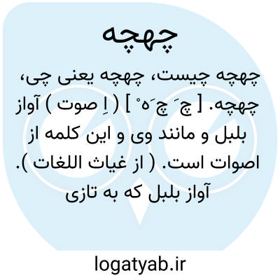 چهچه. [ چ َ چ َه ْ ] ( اِ صوت ) آواز بلبل و مانند وی و این کلمه از اصوات است. ( از غیاث اللغات ). آواز بلبل که به تازی صفیر خوانند. ( آنندراج ). آواز بلبل و جز آن.( از فرهنگ ضیاء ) ( ناظم الاطباء ) ( از فرهنگ نظام ). آواز بلبل و پرندگان خوش آواز دیگر. ( فرهنگ فارسی معین ). حکایت صوت هزار. نام آواز بلبل. صوت بلبل. بانگ بلبل. فتل. نغمه. دستان. ( یادداشت مؤلف ):