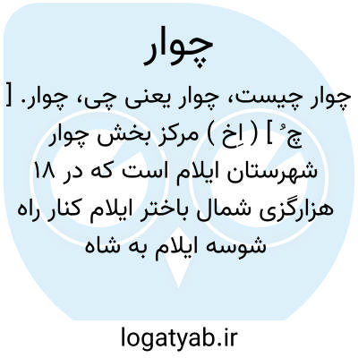 چوار. [ چ َ ] ( اِخ ) یکی از بخش های ده گانه شهرستان ایلام حدود آن بشرح زیر است: از طرف شمال به ارتفاعات کوه شرازول و بخش ایوان از طرف خاور به ارتفاعات کوه بانگول و دهستان خزل بخش شیروان چرادول از جنوب به بخش صالح آباد و سیاه کوه از باختر به مرز عراق. منطقه ای است کوهستانی. هوای قریه هایی که در دامنه ارتفاعات قرار دارند، سردسیر و قریه های دشت و تپه ماهور گرمسیر است. کوه شرازول و کوه بانگول و کوه سیاه در شمال و خاور بخش واقع شده است. رودخانه های این بخش عبارتند از: رودخانه گلال که از کوه شرازول سرچشمه گرفته پس از آبیاری کردن قریه های پلکانه، چشمه سرخ، پلک در قریه بوالحسن با رودخانه مورت یکی شده از مرز ایران خارج میشود. 2- رودخانه قیران که از دامنه های کوه مانشت سرچشمه گرفته از هزارگزی جنوب خاور مرکز بخش عبور نموده داخل رودخانه مورت میشود. این بخش از 43 آبادی بزرگ و کوچک تشکیل شده. جمعیت آن در حدود 4700 تن است. محصولات عمده اش گندم، جو، حبوبات، برنج و لبنیات است. مردمش بزراعت و گله داری اشتغال دارند. در آنجا صنایع دستی زنان از قبیل قالیچه، گلیم، چادرسیاه بافی رواج دارد. راه شوسه شاه آباد به ایلام از خاور بخش میگذرد. بقیه راههای بخش مالرو است. ساکنین بخش از دو طایفه بولی و ازکوازی هستند. ( از فرهنگ جغرافیایی ایران ج 5 ).