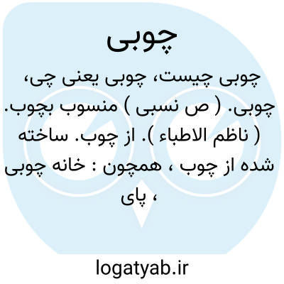 چوبی. ( ص نسبی ) منسوب بچوب. ( ناظم الاطباء ). از چوب. ساخته شده از چوب، همچون: خانه چوبی، پای چوبی، پل چوبی، درچوبی، دسته چوبی، قاشق چوبی، قفس چوبی، نیمکت چوبی، تخت چوبی، میز چوبی، صندلی چوبی، صندلی دسته دار چوبی، قفسه چوبی، کفش چوبی، نرده چوبی. هاون چوبی.