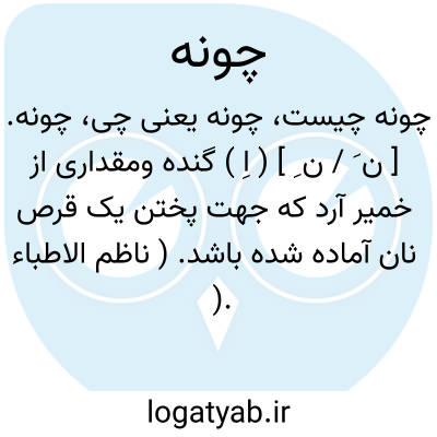 چونه. [ ن َ / ن ِ ] ( اِ ) گنده ومقداری از خمیر آرد که جهت پختن یک قرص نان آماده شده باشد. ( ناظم الاطباء ). خمیری که برای پختن نان گلوله شده باشد. ( فرهنگ نظام ). واحدی برای خمیر آرد گندم یا جو بدان مقدار که یک قرص نان سازد. ( از فرهنگ فارسی معین ). || گلوله ای از هر نوع خمیر.