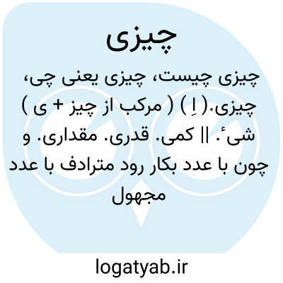 چیزی.( اِ ) ( مرکب از چیز + ی ) شی ٔ. || کمی. قدری. مقداری. و چون با عدد بکار رود مترادف با عدد مجهول «اند» افتد؛ یعنی مبلغ یا مقدار یا مقداری بیشتر: کوه قارن ناحیتی است که مر او را ده هزار و چیزی ده است. ( حدود العالم ). گفت دهاقین را سخنان حکمت باشد ما را از آن چیزی بگوی. ( تاریخ سیستان ).
