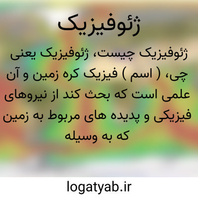 ( اسم ) فیزیک کره زمین و آن علمی است که بحث کند از نیروهای فیزیکی و پدیده های مربوط به زمین که به وسیله نقشه های تحت الارضی و زلزله سنجها و ادوات دیگر الکترو مغناطیس مورد مطالعه و تحقیق قرار میگیرد.