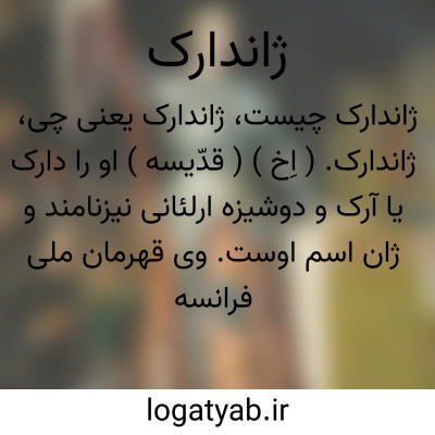 ژاندارک. ( اِخ ) ( قدّیسه ) او را دارک یا آرک و دوشیزه ارلئانی نیزنامند و ژان اسم اوست. وی قهرمان ملی فرانسه است و بسال 1412 م. در دمرمی پای به عرصه وجود گذارد. زنی بغایت دیندار و متقی و اهل مکاشفه و مراقبه و مدعی نوعی وحی بود و میگفت که الهاماتی غیبی از جانب قدیس میشل و کاترین به او میشود که وی را به قیام برای نجات فرانسه از سلطه انگلیسیان میخوانند. وی به وساطت ربر دوبدریکور کاپیتن دوکولر در هنگام محاصره ٔارلئان ( 1429 م. ) در شینن بین درباریان به حضور شارل هفتم پادشاه فرانسه رسید و او را به اصرار بسیار راضی کرد که وی را بر گروهی از لشکریان خود سردار کند. ژاندارک با این عده قلیل انگلیسیان را مجبور به ترک محاصره ارلئان کرد و در جائی بنام پاتی بر ایشان ظفر یافت. و در ریمس تشریفات تاجگذاری شارل هفتم را بجای آورد. سپس قصد تسخیر پاریس کرد ولی بعد از مجروح شدن در نبردی که به دروازه سن هنره روی داد به امر پادشاه از این قصد بازایستاد. ظاهراً وی بعلت خیانت بعضی از حواشی و اطرافیان خود در ظاهر شهر کمپین به دست بورگینیون ها افتاد و سپس کنت لوکزامبورگ او را به انگلیسیان فروخت و آنان وی را در محکمه کلیسائی که بریاست اسقف بوه بنام پیر کوشن تشکیل شد محاکمه کردند. ژاندارک با کمال سادگی و شجاعت و جسارت از خود دفاع کرد. سرانجام محکمه او را تکفیر و به الحاد و ارتداد و فساد عقیدت متهم و به زنده سوختن محکوم ساخت. او را در میدان ویومارشه واقع در روئن زنده بسوختند ( 1431 م. ).