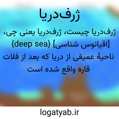 {deep sea} [اقیانوس شناسی] ناحیۀ عمیقی از دریا که بعد از فلات قاره واقع شده است