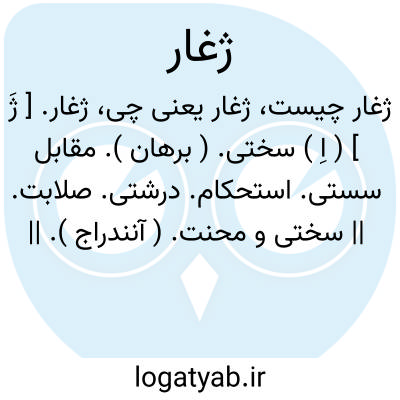 ژغار. [ ژَ ] ( اِ ) سختی. ( برهان ). مقابل سستی. استحکام. درشتی. صلابت. || سختی و محنت. ( آنندراج ). || گیاهی که بدان جامه رنگ کنند. ( برهان ). زغار. ( آنندراج ). رجوع به زغار شود. || غازه. ( آنندراج ). || زنگ و چرک فلزات: