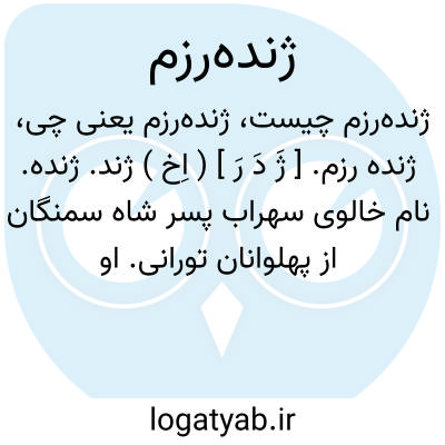 ژنده رزم. [ ژَ دَ رَ ] ( اِخ ) ژند. ژنده. نام خالوی سهراب پسر شاه سمنگان از پهلوانان تورانی. او به یک مشت رستم کشته شد. فردوسی داستان وی را در شاهنامه چنین آورده است: