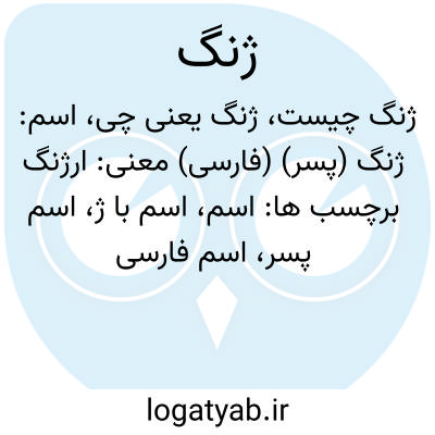 پر نقش و نگار همچو ژنگ است.( منسوب به رودکی از جهانگیری ). || ( اِ ) چین و شکنجی که بر روی و اندام مردم پدید آید از پیری. ( برهان ). آژنگ. و ظاهراً ژنگ بدین معنی مخفف این کلمه است. || قطره باران. ( جهانگیری ) ( برهان ). و به این معنی در بعض فرهنگهابا اول مکسور و یاء معروف مرقوم است. || صاحب آنندراج گوید: بمعنی جلاجل نیز هست لیکن در نسخه لسان الشعرا که نزد کاتب است نیست اما زنگ با زای تازی بمعنی جلاجل آمده است: