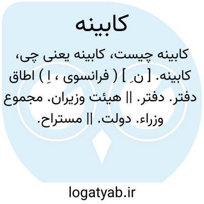 کابینه. [ ن ِ ] ( فرانسوی، اِ ) اطاق دفتر. دفتر. || هیئت وزیران. مجموع وزراء. دولت. || مستراح. مبال ( در تداول ). به هر سه معنی در فارسی مستعمل است.