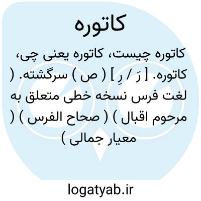 ۱ - ( صفت ) سرگشته شیفته سار حیران: [ آن بلبل کاتوره برجسته ز مطموره چون دست. تنبوره گیرد شجر از چنگل ]. ( منوچهری ) ۲ - سرگشتگی آسیمگی: [ هیچ راحت می نبینم در سرود و رود تو جز که از فریاد و زخمهات ( غیر از ین فریاد کزوی ) خلق را کاتوره خاست ]. ( رودکی )