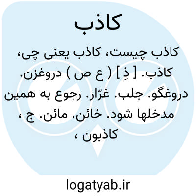 ( صفت ) دروغگو دروغرن جمع: کاذبین. یا اشتهای کاذب. اشتهای دروغین مقابل. اشتهای صادق. یا تشنگی کاذب. تشنگی دروغین. یا شهوت کاذب. شهوت دروغین. یا صبح کاذب. یا فجر کاذب.