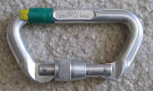 کارابین (ابزار). قلاب یا در کلام عامه کارابین ( به انگلیسی: carabiner or karabiner ) ( در فارسی، بخصوص نزد زرگران و ساعت سازان و سراجان و برخی دیگر صنعتگران، مُدبَر ). نوع خاصی از شَکِل ( shackle - نوعی غل و زنجیر ) است. یک حلقه فلزی با یک دهانه فنر دار برای اتصال سریع و برگشت پذیر دهانه، مورد استفاده قرار می گیرد. این ابزار به ویژه در سیستم های حساس به ایمنی در کار ارتفاع بسیار کاربرد دارد. کارابین کلمه فرم کوتاه شده ( Karabinerhaken )، عبارتی آلمانی برای «قلاب فنری» که توسط یک تفنگدار کارابین، یا کارابینر ( سرباز سواره نظام مسلح به سلاح کارابین ) استفاده می شد تا کارابین خود را به کمربند یا بدن خود بچسباند.