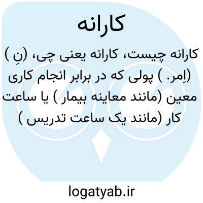 (نِ ) (اِمر. ) پولی که در برابر انجام کاری معین (مانند معاینه بیمار ) یا ساعت کار (مانند یک ساعت تدریس ) پرداخت می شود، کارمزد.