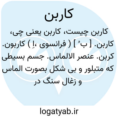( اسم ) کربن یا کاغذ کاربن. کاغذ یست که یک طرف آن برنگ سیاه بنفش یا ابی و انرا برای مسوده برداشتن لای دو یا چند ورق کاغذ سفید میگذارند و چون بامداد یا قلم یا ماشین تحریر چیزی روی ورق. بالایی بنویسند بر ورقه یا ورقه های پایینی نقش بندد.