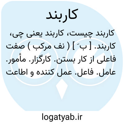 کاربند. [ ب َ ] ( نف مرکب ) صفت فاعلی از کار بستن. کارگزار. مأمور. عامل. فاعل. عمل کننده و اطاعت کننده. ( غیاث ). بعمل آرنده. ( آنندراج ):
