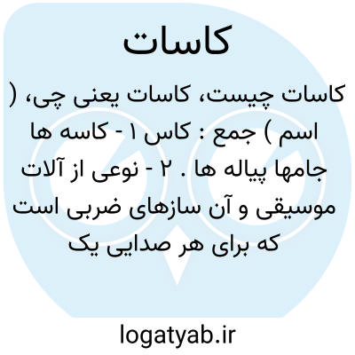 ( اسم ) جمع: کاس ۱ - کاسه ها جامها پیاله ها. ۲ - نوعی از آلات موسیقی و آن سازهای ضربی است که برای هر صدایی یک سیم دارند و در نوازندگی با آنها انگشتهای دست چپ بروی سیمها قرار نمیگیرد ( مقاصد الحان ) [ کاسات و طاسات دقیق در انداختند و مطربان خوب الحان خوش آواز آغاز... ساز کردند ]. ( سلجوقنام. ظهیری )
