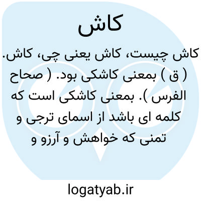 کاش. ( ق ) بمعنی کاشکی بود. ( صحاح الفرس ). بمعنی کاشکی است که کلمه ای باشد از اسمای ترجی و تمنی که خواهش و آرزو و حسرت است و در محل طلب چیزی به طریق آرزو گویند و بمعنی افسوس و تأسف هم آمده. ( برهان ). لعل و آن کلمه ای است جهت امید و ترس و شک. ( منتهی الارب ). ای کاش. کاچ. کاج. خداکند. ان شأاﷲ. چه بهتر بود. چه بهتر باشد. موفق شوید. لیت. بوک. بوکه. بود آیا که: