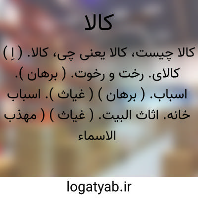کالا. ( اِ ) کالای. رخت و رخوت. ( برهان ). اسباب. ( برهان ) ( غیاث ). اسباب خانه. اثاث البیت. ( غیاث ) ( مهذب الاسماء ). دربای است خانه و مردم. مَحاش. ( منتهی الارب ). سامان و اثاثه. اثاث. ( دستوراللغة ). سِلعة. ( منتهی الارب ). اَخریان. ( برهان ). کالای خانه: بباید گفت تا رعیت آهسته فرونشینند و هر گروهی بجای خویش باشند. و اندیشه خوازها و کالای خویش میدارند. ( تاریخ بیهقی چ ادیب ص 292 ). و بیشتر طمع آن کالا و نعمت را که با وی بود چون بدو نزدیک شدند خواست که پسر خویش را بکشد. ( تاریخ بیهقی چ ادیب ص 441 ).