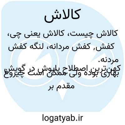 کفش٬ کفش مردانه، لنگه کفش مردنه. کهن‌ترین اصطلاح پاپوش در گویش بهاری بوده ولی ممکن است چیروغ مقدم بر کالاش باشد.