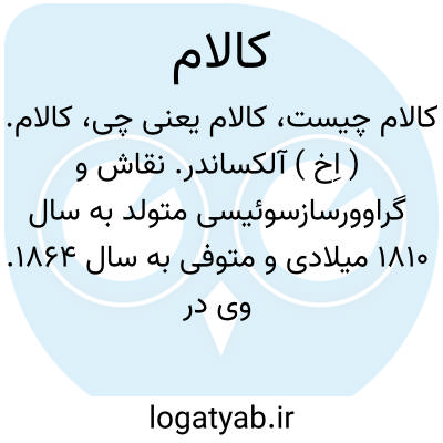 کالام. ( اِخ ) آلکساندر. نقاش و گراوورسازسوئیسی متولد به سال 1810 میلادی و متوفی به سال 1864. وی در ترسیم دورنما زبردستی و مهارت داشته است.