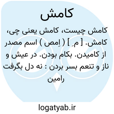 کامش. [ م ِ ] ( اِمص ) اسم مصدر از کامیدن. بکام بودن. در عیش و ناز و تنعم بسر بردن: