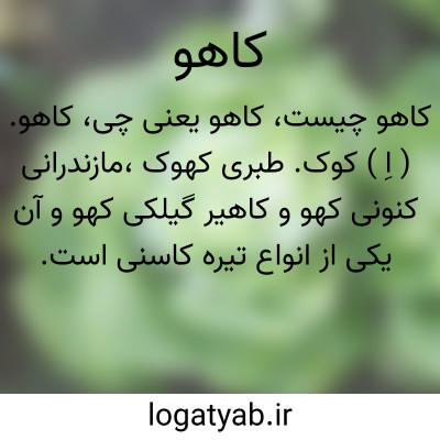( اسم ) گیاهی است از تیر. مرکبان که یکساله است ولی دارای برخی انواع دو ساله و پایا نیز میباشد. در ساقه و برگ این گیاه شیراب. سفید رنگی جریان دارد. انواع خود روی آن در مناطق معتدل. کر. زمین بفراوانی میروید ولی بعلت کشت های متوالی این گیاه بمنظور استفاده از تغذی. برگها و ساق. آن نژاد های متعددی بدست آورده اند. شیراب. کاهو پس از خروج تدریجا برنگ زرد و قهوه یی در میاید. در شیراب. گیاه مزبور بمقدار کم کائوچو و مقدار بسیار کمی نیز هیوسیامین موجود است. شیراب. مستخرج از انساج کاهو پس از سفت شدن در پزشکی بنام کتو کاریم موسوم میشود که سابقا آنرا بعنوان یک خواب آور ضعیف و مسکن سرفه و کاهند. تحریکات عصبی توصیه میکردند و بعوه مصرف آن در رفع سین منی و روماتیسم نیز توصیه شده است. از تبخیر شیراب. حاصل از انساج کاهو نیز عصاره ای بنام تریداس حاصل میگردد که اثر مسکن و خواب آور دارد. کاهوی معمولی که یکی از نژاد های تربیت شد. کاهو است بوسیل. بذر زیاد میشود و دارای اقسام مختلف است از قبیل کاهوی پیچ کاهوی تابستانه و کاهوی زمستانه خس کاهوی معمولی. یا کاهوی پیچ. یکی از گونه های کاهو که برگها یش حول ساقه می پیچند و از انواع مرغوب کاهو میباشد. یا کاهوی خرگوش. کاهوی وحشی یا کاهوی در یایی. یگی از گونه های آلگهای سبز که از تیر. ولواسه میباشد. این گیاه آبزی است و برخی گونه هایش در آب شیرین و برخی در آب دریا میزیند. وجه تسمی. این آلگ بدان جهت است که برگها یش شبی کاهو دارد و نیز و مانند کاهو در ساد یا در اغذی. پخته خورده میشود خس بحری. یا کاهوی فرنگی یکی از گونه های کاهو که شبیه کاهوی پیچ ولی دارای ساقه های کوتاه است و برگها یش سبز مایل بسفید است. شکل بوت. کاهوی فرنگی شبیه کلم برگها ی کوچک و کروی است. توضیح [ کاهوی فرنگی ] در عهد ناصر الدین شاه قاجار ( نیم. دوم قرن. ۱۳ ه. ) وارد ایران شد و متداول گردید ( الماثر و اثار ) یا کاهوی وحشی. یا کاهوی معمولی. گون. خود روی کاهو خس الزیت کاهوی خود رو کاهوی خرگوش.