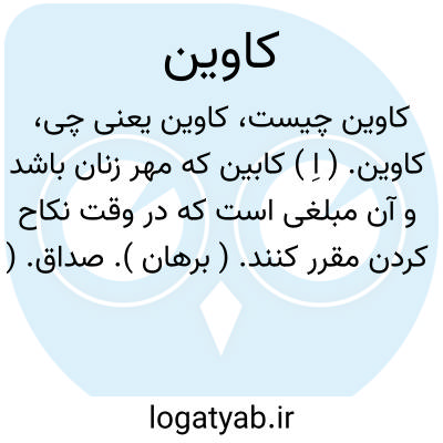 کاوین. ( اِ ) کابین که مهر زنان باشد و آن مبلغی است که در وقت نکاح کردن مقرر کنند. ( برهان ). صداق. ( یادداشت مؤلف ): دختر شهنشاه فخرالدوله را از بهر نوح بن منصور بخواستند مبلغ صد هزار دینار کاوین. ( مجمل التواریخ و القصص ). موسی گفت: من چیزی ندارم که کاوین دهم. شعیب گفت: کاوین او خواهم که تو هشت سال مزدوری کنی. ( تاریخ بلعمی ).