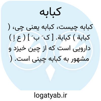 ( اسم ) درختچه ایست با رونده از دست. فلفل های سیاه و از تیر. بید ها که ساقه اش قابل انعطاف و بی کرک و شاخه هایش کوتاه است و منشا اصلی آن جاوه و سوماتر او برنئو است ولی امروزه در این نواحی و همچنین در هند و نقاط دیگر پرورش مییابد. این درختچه برگهای متناوب بی کرک کامل چرمی و نوک تیز دارد و گلهای نر آن بر روی دو پای. جدا گانه مجتمع و ماده بصورت سنبله یی در مقابل برگها است. گل های نر و ماد. وی فاقد پوشش گل هستند. گل نر دارای ۲ پرچم و گل ماده دارای مادگی مرکب از ۳ تا ۴ کله است. میوه اش سته و کروی و دارای دنباله ای دراز تر از قطر میوه است ( بهمین علت آنرا فلفل دم دار نیز گویند ). میو. این گیاه قبل از رسیدن کامل چیده میشود و پس از خشک شدن در معرض استفاده قرار میگیرد. میو. خشک شد. آن کمی بزرگتر از فلفل سیاه ( بقطر ۵ تا ۶ میلیمتر ) و دارای دنباله ایست که در واقع امتداد برون بر میوه است. رنگ میو. خشک شده از قهوه یی خاکستری تا قهوه یی سیاه متغیر است و در سطح آن چیز هایی وجود دارد که بر اثر خشک شدن سطح خارجی میوه بوجود آمده است. بوی آن معطر و قوی و طعمش کمی تلخ و تند و معطر است. در ترکیب شیمیایی میوه های گیاه مزبور بمقدار ۱٠ تا ۱۸ درصد اسانس با بوی تند و معطر و بمقدار یک درصد اسید کوبه بیک و بمقدار ۲/۵ درصد رزین خنثی بنام کوبه بین و مقدار ی مواد روغنی و صمغ و امح آهکی و غیره است. اسانس کبابه نیرو دهند. اعصاب و کاهش دهند. ترشحات ریتین و دارای اثر مدر است و از راه ادرار و مجاری تنفسی و همچنین از راه جلد دفع میشود. کبابه مقوی معده است و هنز هم در برخی امراض مجاری ادرار ( از قبیل سوزاک ) مورد استفاده میباشد. چون ادام. مصرف آن تولید شکم روش میکند همراه با مواد قابض از قبیل کاشو و را تانیا مصرف میشود کباب. اصل کباب. چینی کباب. صینیه حب العروس کبابیه کباب چینی مهیلیون فر یغلیون. یا کباب. اصل. یا کباب. چینی. یا کباب. شکافته. درختچه ایست از تیر. سداب ها دارای برگهای متناوب مرکب که میوه اش بانداز. میو. فلفل سیاه میباشد که چون از نوع کپسول است پس از رسیدن شکاف بر میدارد و مانند فلفل تند و معطر است. این گیاه در آسیای شرقی و آمریکا ی شمالی میروید و در تداول بعنوان مقوی نیروی باه بکار میرود فلفل جابون فلفل ژاپونی جا بونیا فلفل آغاجی فاغره فاغر فاعیه فاجیه فاغر. فلفلی دهان باز.