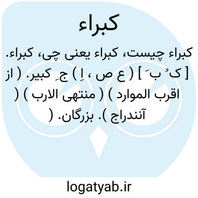 کبراء. [ ک ُ ب َ ] ( ع ص، اِ ) ج ِ کبیر. ( از اقرب الموارد ) ( منتهی الارب ) ( آنندراج ). بزرگان. ( آنندراج ) ( غیاث اللغات ): و وی از محتشمان اهل تصوف بود ( سهل بن عبداﷲ تستری ) و کبرای ایشان. ( کشف المحجوب ). ارواح طیبه مشایخ طریقت و کبراء حقیقت قدس اﷲ ارواحهم. ( انیس الطالبین ج 2 ص 3 نسخه خطی کتابخانه مؤلف ). حواشی اسوار به افراد امراء و آحاد کبراء لشکر سپرد.( ترجمه تاریخ یمینی ص 256 ). و رجوع به کبیر شود.